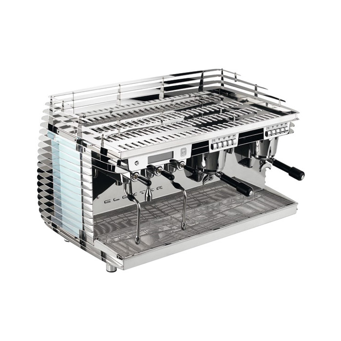 A Machine created with the future in mind. It is a union between audacious style and exclusive execution. The inimitable body is composed of 76 stainless steel tabs, laser cut, polished and welded manually one by one. This machine comes with a patented milk frothing system, a cup heater tray and brewing temperature control. It will create a unique ambiance in your cafe or establishment